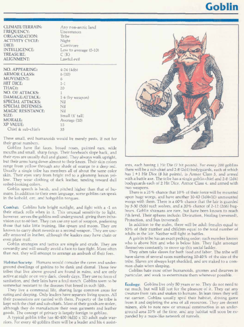 Goblin – TSR 2140A Monstrous Manual