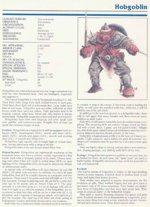 Hobgoblin – TSR 2140A Monstrous Manual