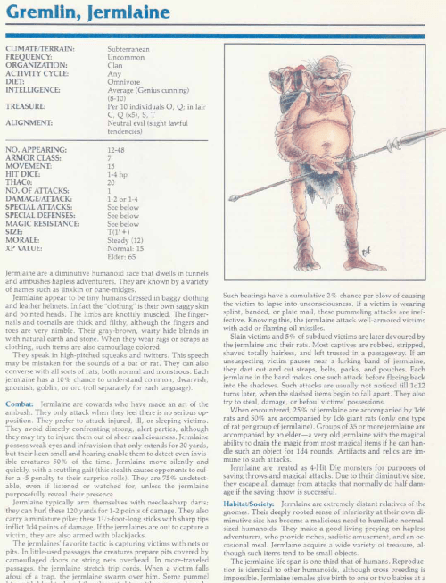 Jermlaine Gremlin – TSR 2140A Monstrous Manual