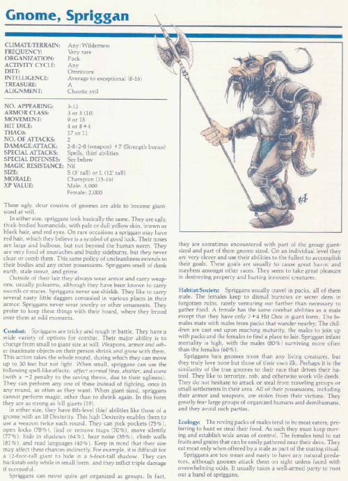 Spriggan Gnome – TSR 2140A Monstrous Manual