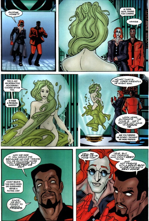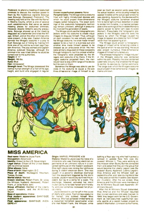 Holo (Marvel) uses a holographic projection to look older and sexier than she actually is in The First X-Men #1.