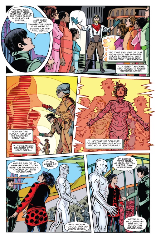 A whole planet chooses to be reborn as holograms in Silver Surfer V6 #9.