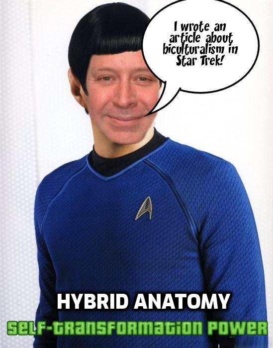 Hybrid Mimicry – The character has the form and/or characteristics of a hybrid of two humanoid species. Hybrid Anatomy is also known as Cross-Breeding, Cross-Species Physiology, Cross-Species Genetics, Fusion-Species Physiology, Half-Blood, Half-Breed Physiology, Hanyō (Japanese term), Hybrid Physiology and Hybridism.