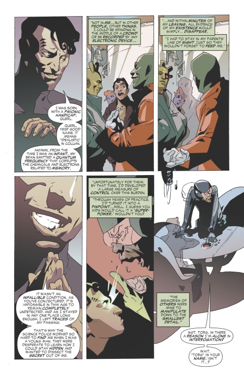Whatizname (Ballad of Halo Jones) has this power and Alan Moore once again takes an interesting superpower and makes a very interesting story based on the superpower.