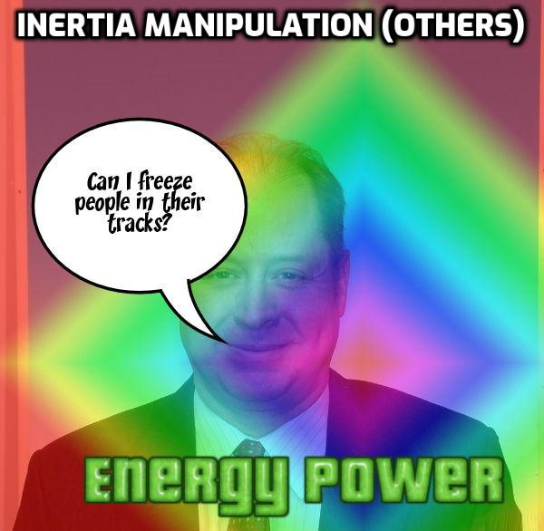 Inertia Manipulation (others) – The ability to manipulate the inertia of objects other than your own inertia. Inertia is the resistance of any physical object to any change in its position and state of motion. This includes changes to the object’s speed, direction, or state of rest. Inertia Manipulation (others/self) is also known as Adráneiakinesis and Inertia Control.