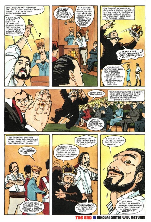 Nikolai Dante uncovers a plot to make the King of England insane with a PSYKD Range 27 serum in “Cruel Britannia” – 2000 AD #1084.