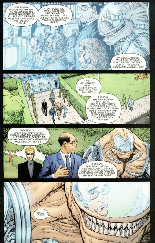 Jack Hawksmoor has his intelligence reduced by The Authority V1 #27.