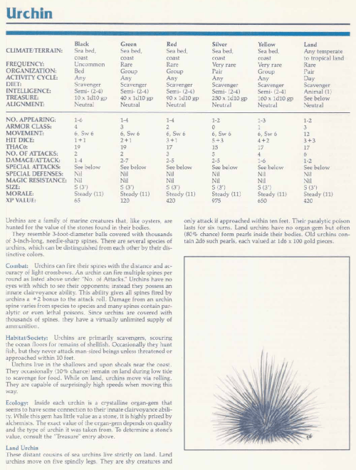 Urchin – TSR 2140A Monstrous Manual