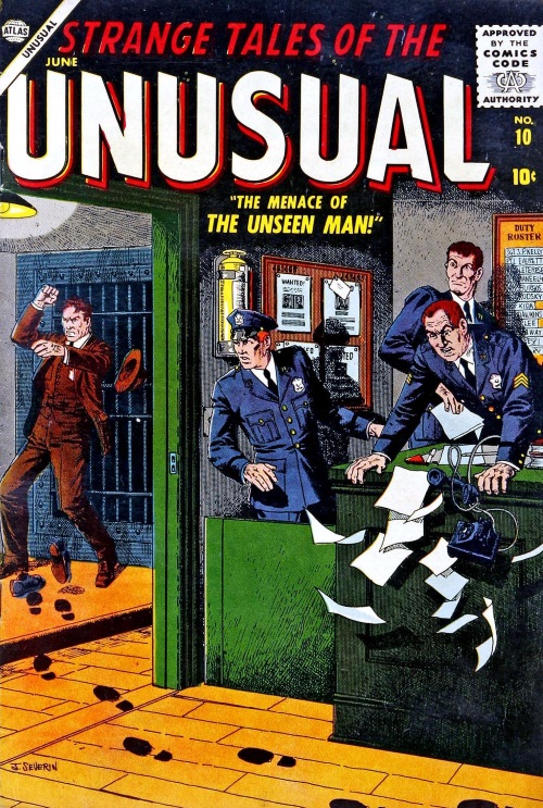 Some one-shot invisibility stories in Atlas Comic’s Uncanny Tales. I guess invisible with clothing is more interesting than just being invisible (Uncanny Tales #25, Uncanny Tales #40).