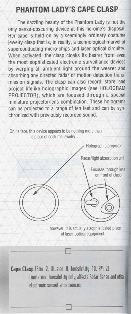 Phantom Lady (DC) – Cape Clasp – DC Heroes-DC Technical Manual