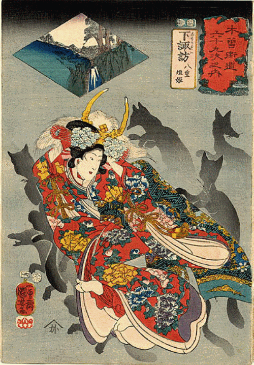 348) Possession – Kitsunetsuki or possession by a Kitsuni is an actual psychological disorder. In myth, kitsune especially like to possess beautiful young girls and a special exorcism must be done.