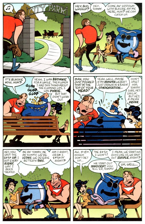 Kool-Aid Man after his adventures at Marvel discusses the down side to being an icon in Tom Strong’s Terrific Tales #12 (America’s Best Comics).