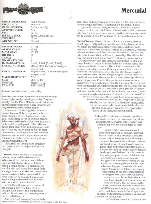 Mercurial – TSR 2173 Monstrous Compendium Annual Volume 4