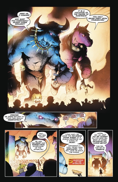 Ox-Head and Horse-Face (DC) are guardians of the traditional Chinese underworld and appear in New Super-Man #10.