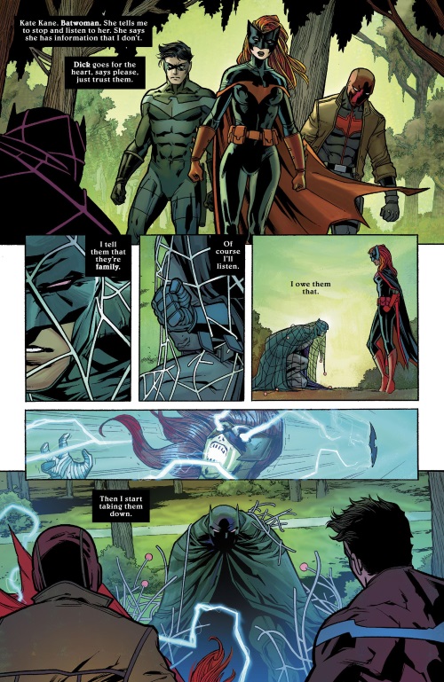 The Batman family uses a net on Batman in All-Star Batman v2 #8.