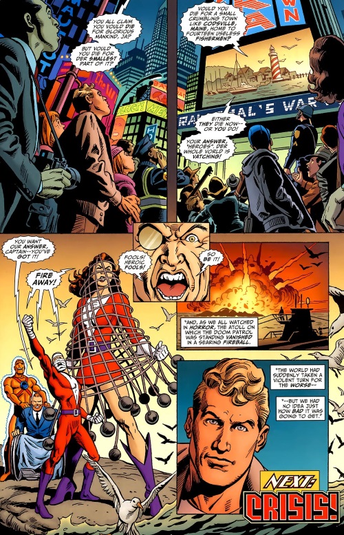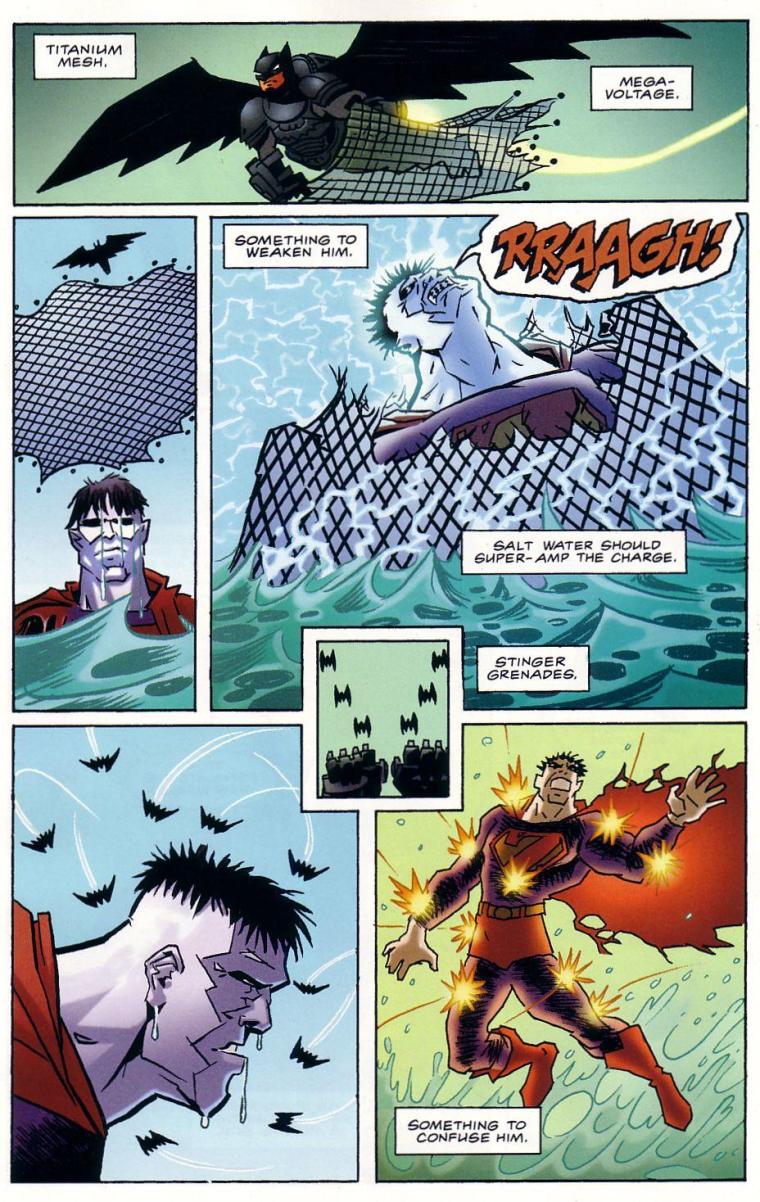 Bizarro (DC) caught in a net in Trinity: Batman Superman Wonder Woman #3.