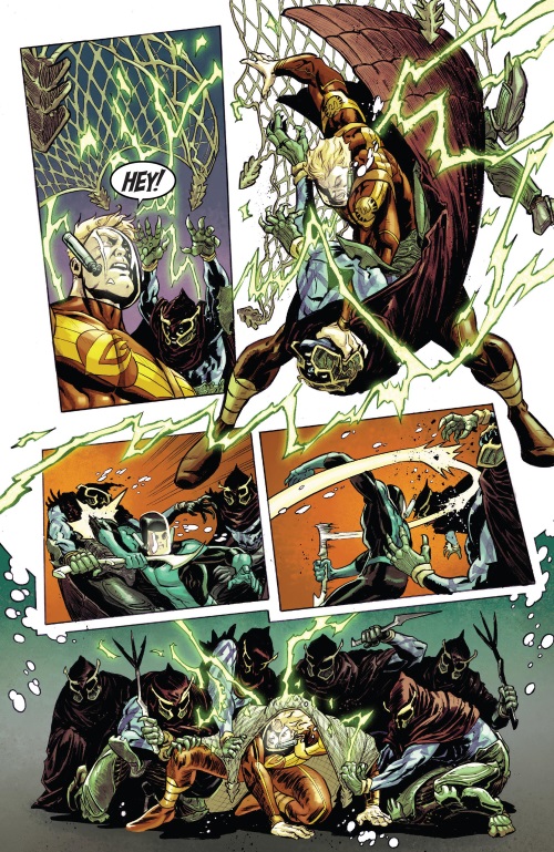 Jim Hammond (Marvel) is attacked with an electric net in Secret Empire – Brave New World #1.