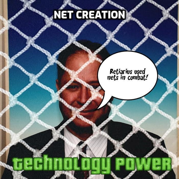 Net Creation – The ability to create nets that can trap characters that are superhuman or nearly superhuman and/or the ability to use nets with superhuman or near superhuman skill. Net Creation is also known as Net Generation and Net Projection. Similar to (492) Web (energy) and (493) Web (matter). If a fine mesh is used then the object is a web. If a larger mesh is used then the object is a net. There aren’t enough energy nets in fiction to make the energy versus matter distinction relevant for nets. Secondly, webs made of matter are generally sticky. A subcategory of (350) Power Bestowal (objects).