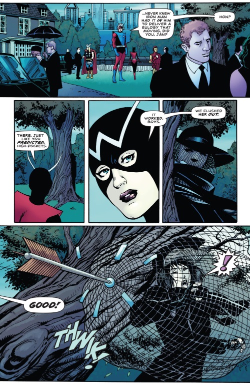 Hawkeye uses a net arrow again in Avengers V6 #5.1.
