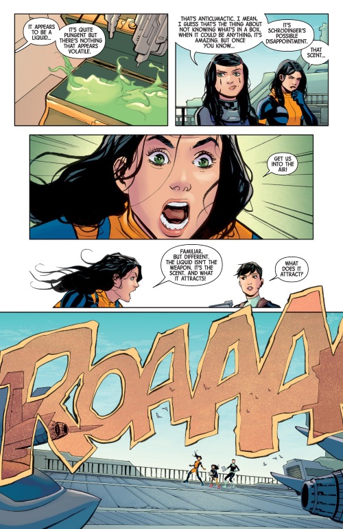 Fing Fang Foom (Marvel) is attracted romantically to the Wolverine’s S.H.I.E.L.D. Helicarrier because of pheromones in All-New Wolverine #8.