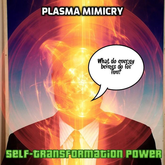 Plasma Mimicry – The being is composed of plasma and has all the powers that state entails. Stars are composed of plasma! Plasma Mimicry is also known as Plasma Physiology.