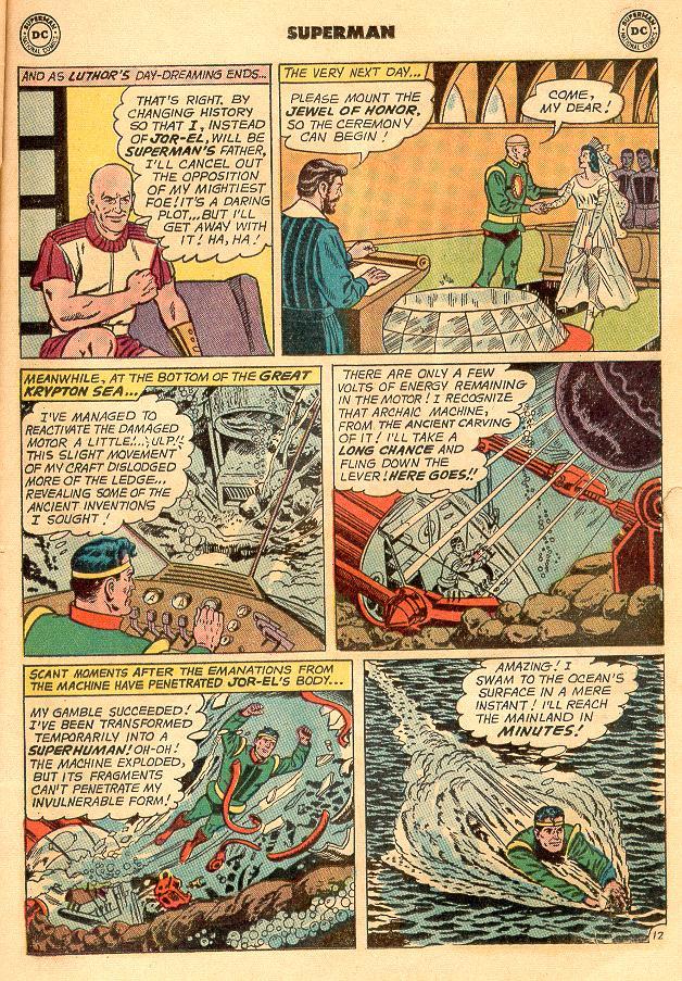 Jor-El (DC) receives superpowers through alien technology in Superman V1 #170.
