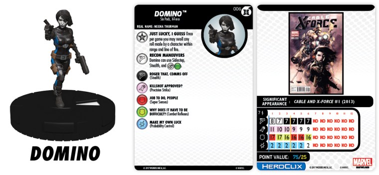 Domino (Marvel) has both good luck and bad luck generation! In combat, she has good luck and her opponents have bad luck!