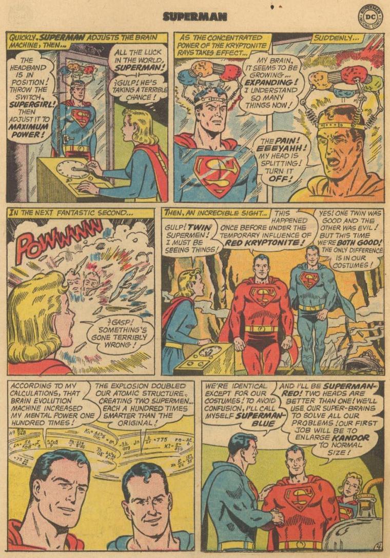 Brain-Evolution Machine uses different colored kryptonites in Superman V1 #162.