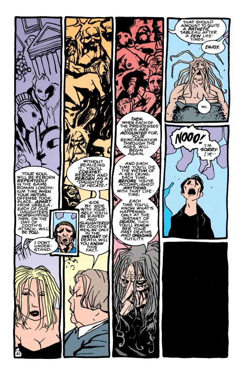 The Three Witches (Vertigo) have the ability to reincarnate a person as a punishment and do this to Cooth in Witchcraft #3.