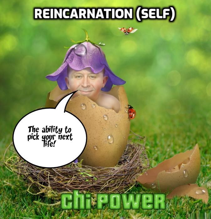 Reincarnation (self) – The ability to control your own reincarnation and/or ask for aid from past or future incarnations.