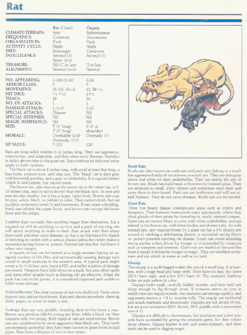 Rat Fiend – TSR 2173 Monstrous Compendium Annual Volume 4