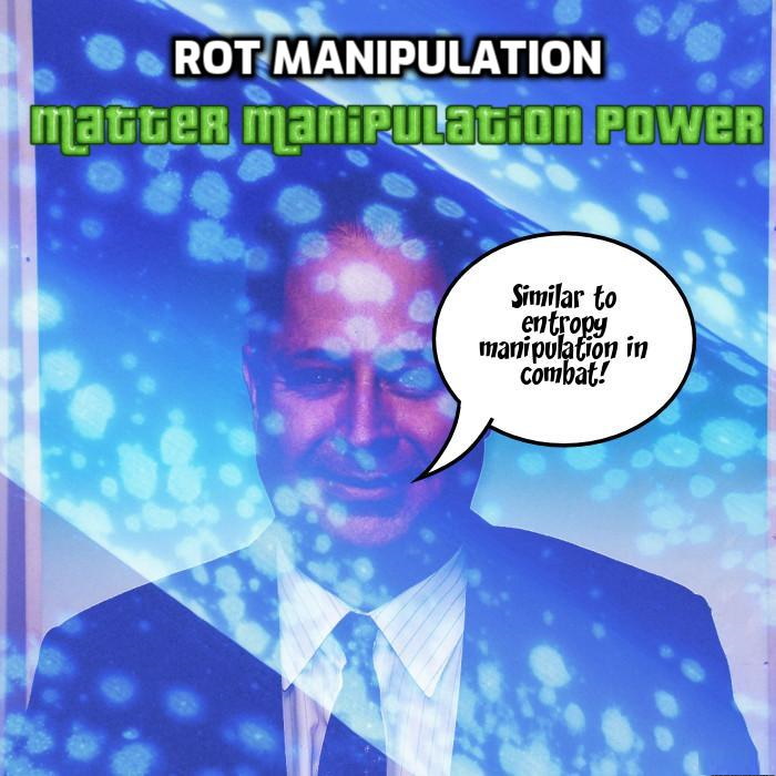 Rot Manipulation – The ability to manipulate rot. Rot Manipulation is also known as Cariesgenesis, Decay Inducement, Deterioration Inducement, Rot Inducement and Fester Inducement.