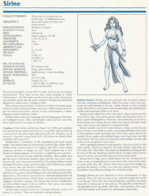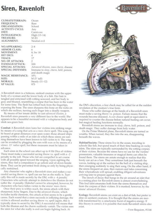 Ravenloft Siren – TSR 2173 Monstrous Compendium Annual Volume 4