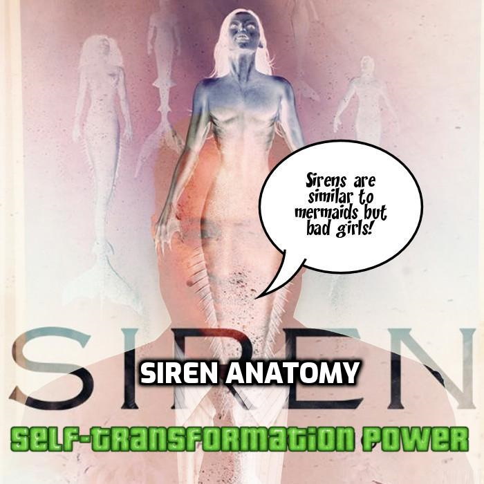 Siren Anatomy – The character can take on the form and/or characteristics of a siren. Siren Anatomy is also known as Siren Physiology and Siren Mimicry.