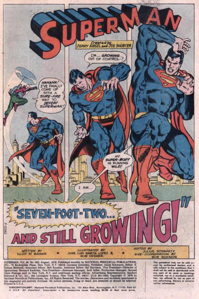 Lex Luthor (DC) turns Superman (DC) into a giant in Superman V1 #302.