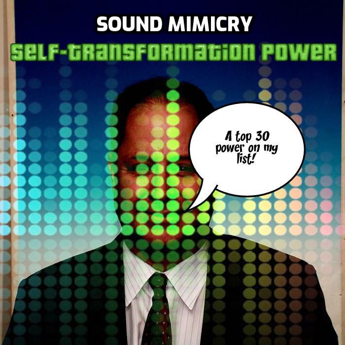 Sound Mimicry – The character has a body composed of sound. Sound Mimicry is also known as Audio Mimicry, Noise Mimicry, Noise Physiology, Sonic Mimicry, Sonic Physiology, Sonokinetic Form and Sound Physiology.
