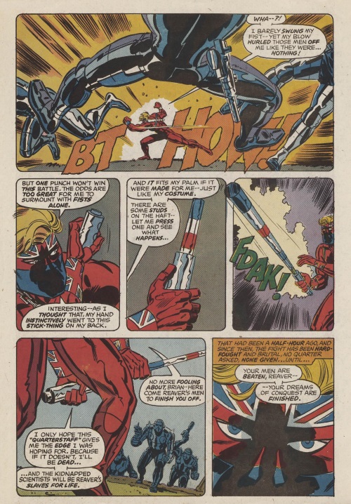 Captain Britain’s Quarterstaff in Captain Britain V1 #2.