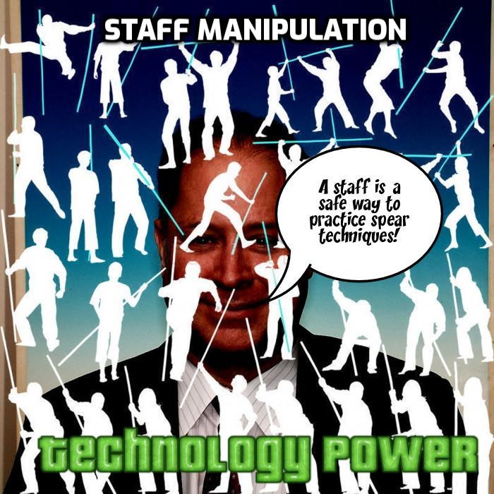 Staff Manipulation – The character has a staff that can be used for various superhuman effects due to user skill and/or special properties of the staff. Staff Manipulation is also known as Bō Expertise, Bō Proficiency, Bō Skill, Bōjutsu, Cane Proficiency , Enhanced Staff Proficiency, Enhanced Wand Proficiency, Gun (棍: stick), Quarterstaff and Rod Proficiency. A subcategory of (490) Weapon Manipulation. Other weapons include (049) Arrow Manipulation, (060) Axe Manipulation, (079) Bow Manipulation, (176) Everyday Object Weaponization, (205) Hammer Manipulation, (259) Mace Manipulation, (407) Spear Manipulation, 448) Thrown Weapon and (494) Whip Manipulation. (490) Weapon Manipulation is a subcategory of (350) Power Bestowal (objects).