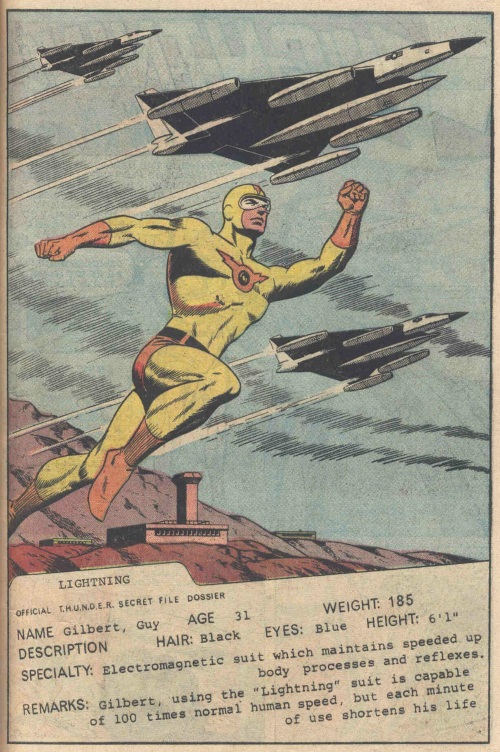 Lightning uses a suit to achieve superhuman speeds in T.H.U.N.D.E.R. Agents #5 (Tower).
