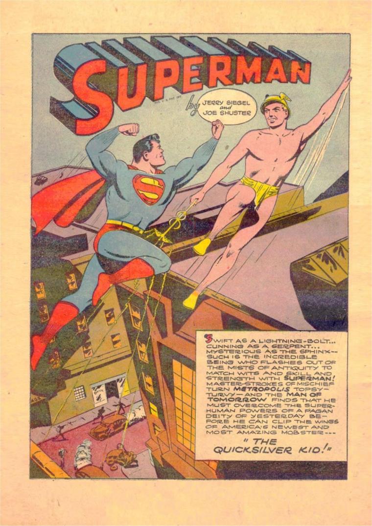 Superman (DC) faces “The Quicksilver Kid” who is actually the god Mercury in Superman V1 #26.