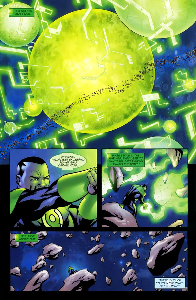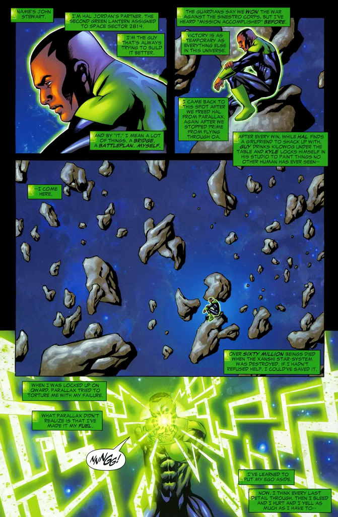 John Stewart’s (DC) will power exceeds the limit of his ring when he tried to recreate a solar system from scratch in Green Lantern V4 #26.