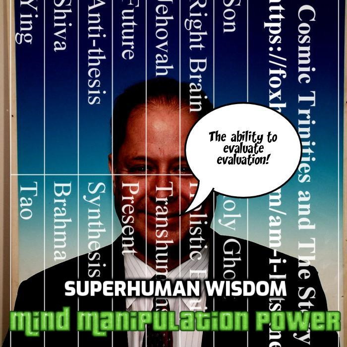 Superhuman Wisdom – The ability to combine intelligence with a high level of insight about one’s self and others. Self-understanding that leads to self-control is part of being wise. Superhuman Wisdom is also known as Advanced Wisdom, Enhanced Sagacity, Enhanced Sapience, Enhanced Wisdom, Immense Wisdom, Sagacity, Super Wisdom, Understanding and Wisdom. Similar to (421) Superhuman Intelligence. However, as pointed out in the superhuman intelligence entry, those with superhuman intelligence often show low interpersonal and self understanding as a plot device.