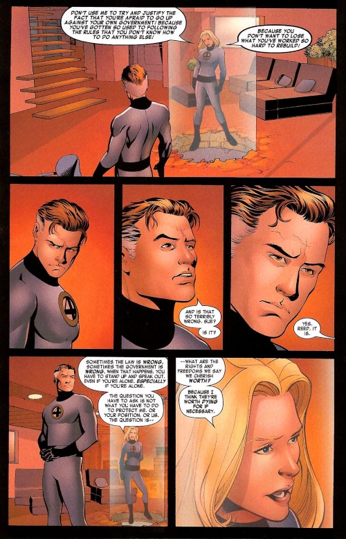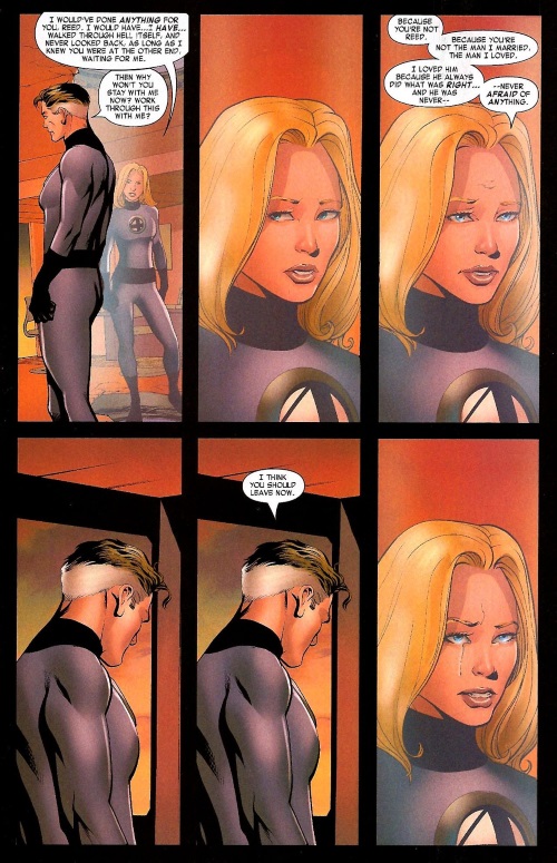 Reed Richards (Marvel) is more intelligent than his wife Susan Storm (Marvel) but she shows more wisdom because she understands people better. This fact comes to the fore during the superhero Civil War when Reed Richards finds himself on the losing side as opposed to his wife.