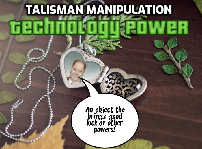 Talisman Manipulation – The talisman can provide power for various superhuman effects. Strictly speaking amulets provide protection from evil powers. Amulets do not provide the user more power. Talismans can provide power as well as protection. However, in fiction the two terms are often used interchangeably and this is especially true in comic books. Talisman Manipulation is also known as Amulet Control, Amulet Manipulation, Charm Control, Charm Manipulation, Juju Control, Juju Manipulation, Magic Charm Control, Magic Charm Manipulation, Magical Charm Control, Magical Charm Manipulation, Mojo Control, Mojo Manipulation, Omamori Control, Omamori Manipulation, Periapt Control, Periapt Powers, Talisman Control and Totem Control. A subcategory of (350) Power Bestowal (objects).