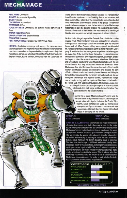 Mechamage (Marvel) that uses a computer to analyze magical threats in Official Handbook of the Marvel Universe #1.