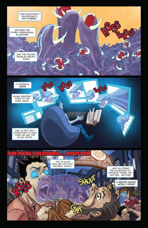 A Necro Magic Computer Virus that can spread dark magic via the internet is introduced in Danger Doll Squad #1 (Action Lab).