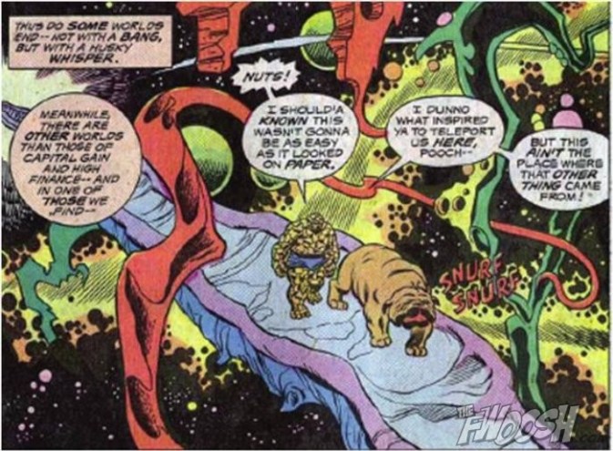 Lockjaw (Marvel) and the Thing (Marvel) are the best Buddy Film in the Marvel Universe! I suggest a television cartoon in which Lockjaw and the Thing are charged by Doctor Strange (Marvel) to hide the Infinity Gems in the farthest reaches of the Marvel Universe so the Infinity Gauntlet will never be created again. This happens after the events of the Avengers: Infinity War when Thanos (Marvel) is inevitably defeated.