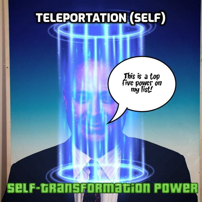 Teleportation (self) – The ability to move oneself and a person adjacent from one place to another without occupying the space in between. Teleportation (self) is also known as Coordinate Change, Geo-Leaping, Phase-Jumping, Position Change, Spatial Movement, Teleport, Tele-Transportation and Translocation. Similar to (347) Portal Creation, (445) Teleportation (other) and (499) Wormhole Creation.