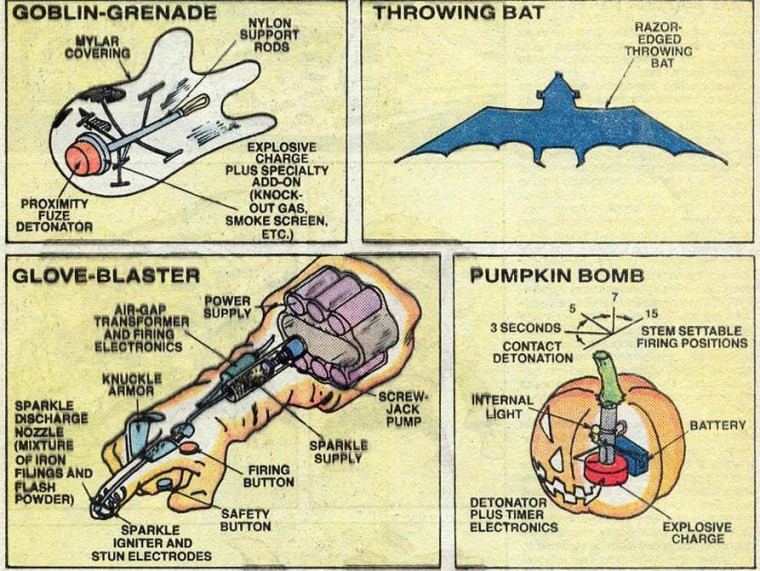 Hobgoblin (Marvel) likes to throw goblin grenades, pumpkin bombs and throwing bats in the Official Handbook of the Marvel Universe V2 #5.