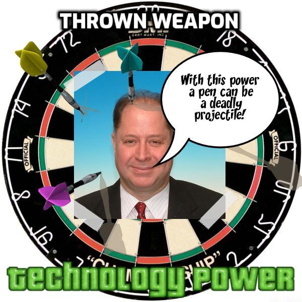 Thrown Weapon – The thrown weapon can be used for various superhuman effects. Thrown Weapon is also known as Enhanced Throwing, Enhanced Chucking, Enhanced Hurling, Enhanced Pitching and Enhanced Tossing. A subcategory of (490) Weapon Manipulation. Other weapons include (049) Arrow Manipulation, (060) Axe Manipulation, (079) Bow Manipulation, (176) Everyday Object Weaponization, (205) Hammer Manipulation, (259) Mace Manipulation, (407) Spear Manipulation, (411) Staff Manipulation and (494) Whip Manipulation. (407) Spear Manipulation is a subcategory of thrown weapons. (490) Weapon Manipulation A subcategory of (490) Weapon Manipulation. Other weapons include (049) Arrow Manipulation, (060) Axe Manipulation, (079) Bow Manipulation, (176) Everyday Object Weaponization, (205) Hammer Manipulation, (259) Mace Manipulation, (407) Spear Manipulation, 448) Thrown Weapon and (494) Whip Manipulation. (490) Weapon Manipulation is a subcategory of (350) Power Bestowal (objects).